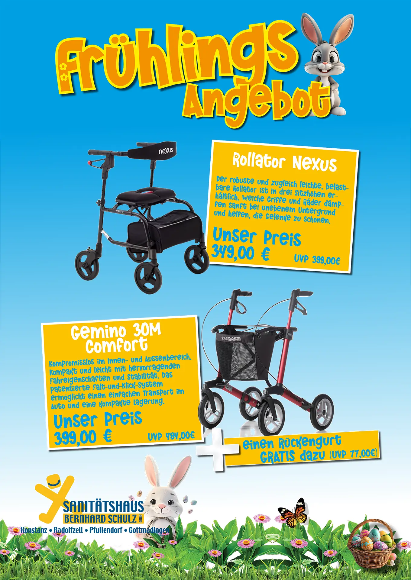 In unseren Sanitätshäusern in Konstanz, Radolfzell, Pfullendorf und Gottmadingen finden Aktionen zur Einführung neuer Partner und Produkte statt.